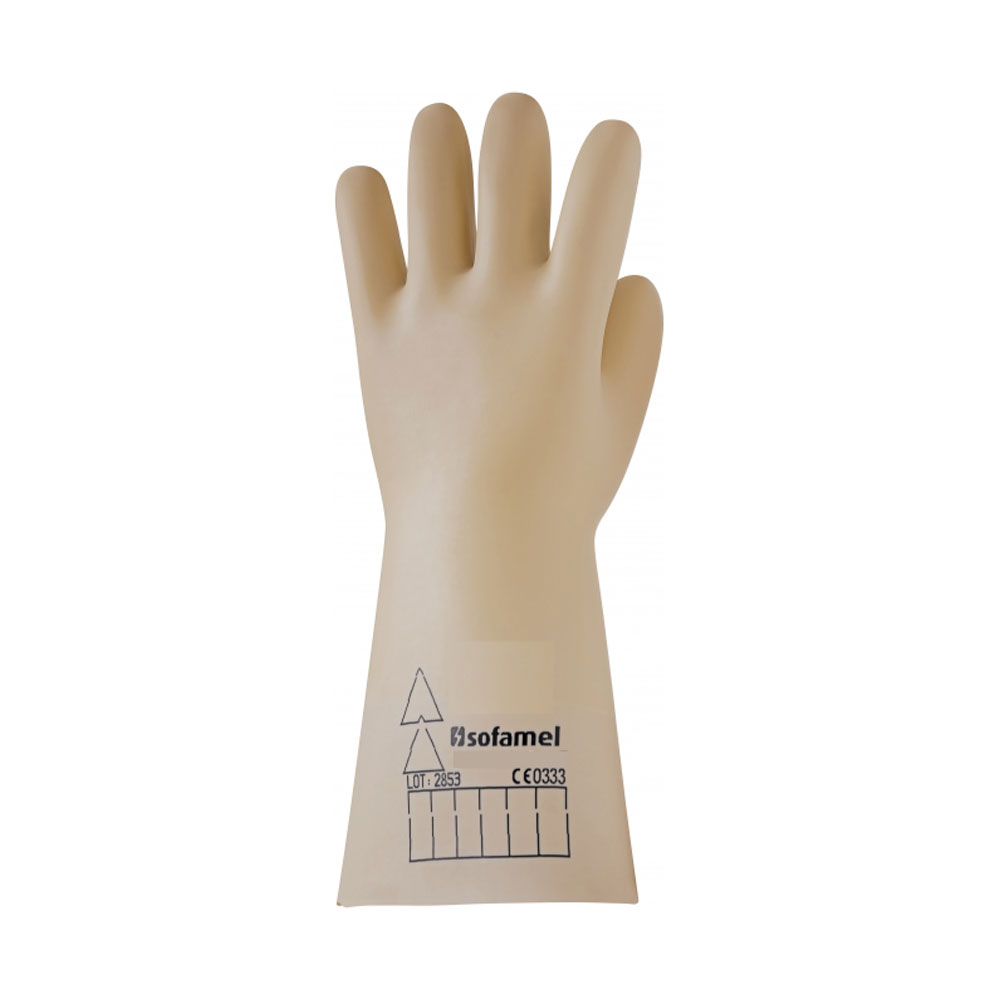 Διηλεκτρικά γάντια από φυσικό λατέξ. Κλάση 4. Κατηγορία RC. Τάση δοκιμής: 40.000 volts. Τάση λειτουργίας: 36.000 volts μέγιστη.