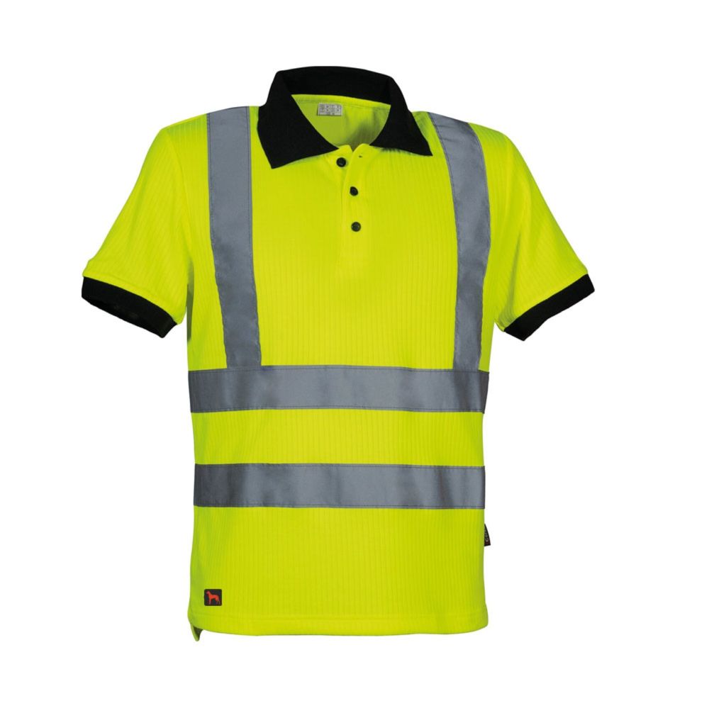 Κοντόμανικο, δίχρωμο πόλο μπλουζάκι υψηλής ορατότητας, με ανακλαστικές ρίγες, ριμπ γιακά και λάστιχο στο μανίκι. Σύνθεση: 75% πολυεστέρας, 25% βαμβάκι. Μεγέθη XS-4XL. Διατίθεται σε χρώματα: Φωσφορίζον κίτρινο, Φωσφορίζον πορτοκαλί.