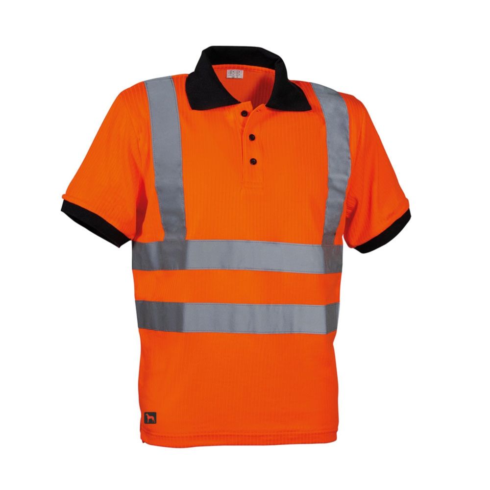 Κοντόμανικο, δίχρωμο πόλο μπλουζάκι υψηλής ορατότητας, με ανακλαστικές ρίγες, ριμπ γιακά και λάστιχο στο μανίκι. Σύνθεση: 75% πολυεστέρας, 25% βαμβάκι. Μεγέθη XS-4XL. Διατίθεται σε χρώματα: Φωσφορίζον κίτρινο, Φωσφορίζον πορτοκαλί.